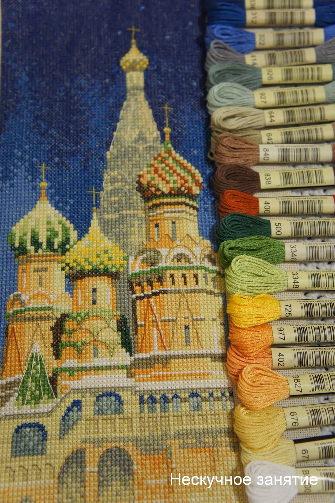 Я сегодня не с пустыми руками, на этот раз покажу вам Москву, а точнее самое ее сердце -Храм Василия Блаженного. Вышивала давненько, еще в прошлом году. Нужно уже, наконец-то все панельки показать и все, забыть.
